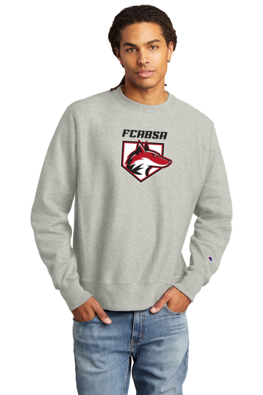 12-ounce 82/18 cotton/poly fleece 78/23 cotton/poly (Oxford Grey) 66/44 cotton/poly (Charcoal Heather) Reverse Weave cross-grain cut resists shrinkage 1x1 rib knit neck side panels sleeve cuffs and hem Embroidered Champion C logo at left cuff Woven back neck label