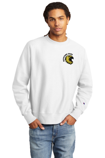 12-ounce 82/18 cotton/poly fleece 78/23 cotton/poly (Oxford Grey) 66/44 cotton/poly (Charcoal Heather) Reverse Weave cross-grain cut resists shrinkage 1x1 rib knit neck side panels sleeve cuffs and hem Embroidered Champion C logo at left cuff Woven back neck label