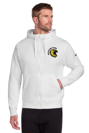 This brushed-back fleece hoodie is where comfort meets street-ready Nike style Jersey-lined three-panel hood with dyed-to-match drawcords and front pockets Rib knit cuffs and hem A contrast Swoosh logo is embroidered on left sleeve Made of 8.2-ounce 72/20/8 cotton/polyester/organic cotton. **