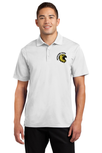 Smooth micropique polos that wick moisture and resist snags. 3.8-ounce 100% polyester tricot Snag resistant Moisture-wicking Double-needle stitching throughout Tag-free label Taped neck Flat knit collar 3-button placket with dyed-to-match rubber buttons Set-in open hem sleeves Armhole accent Side vents